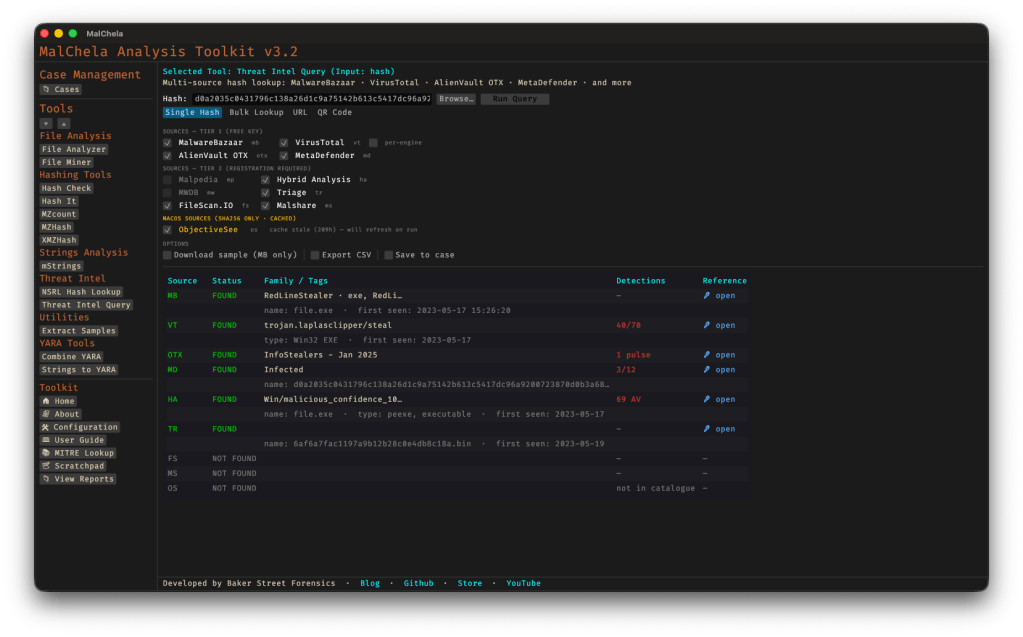 Support for Recorded Future Tri.ge (researcher account) has also been validated. On that note, if you’re a member at Malpedia and would like to send me an invite, it would be much appreciated.