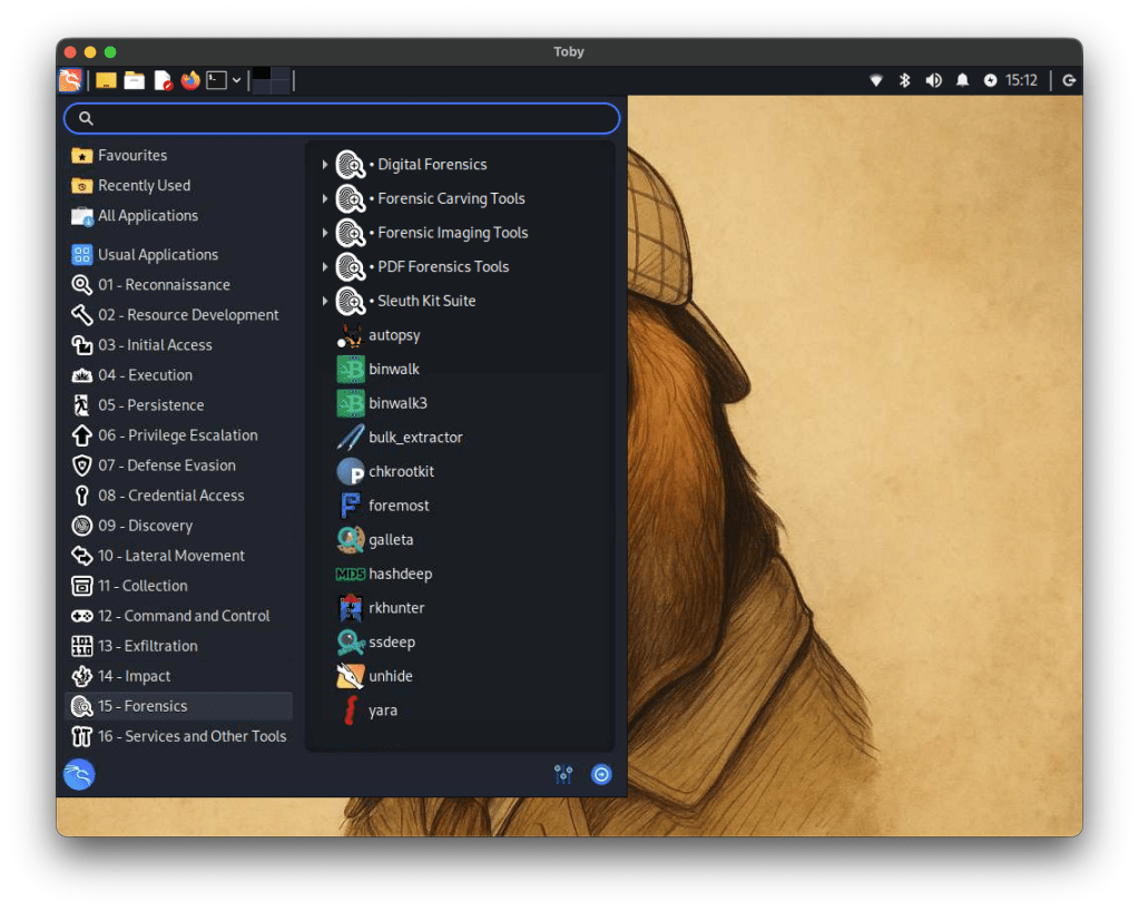 One of Toby’s handiest features isn’t a tool you run—it’s a tool to remember tools. toby-find is a simple but powerful command-line helper built into the system. It gives you fast access to a curated list of CLI forensics tools available on Toby, along with short descriptions and usage tips.