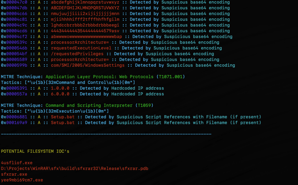 - Rust-based malware analysis toolkit combining YARA scanning, file analysis, hash generation, string extraction with MITRE ATT&CK mapping, and automated malware sample extraction from password-protected archives